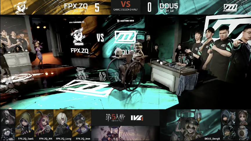 第五人格2021IVL夏季赛常规赛DOU5 vs FPX.ZQ 第三局 双方监管者四抓
