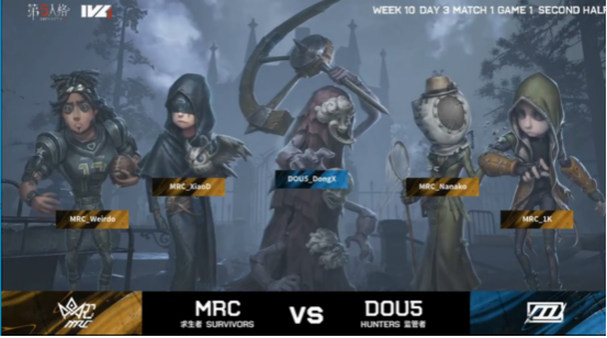 今天将进行的是第五人格2021IVL夏季赛常规赛的第10周第3天第1场中的第1局比赛,对阵双方为MRC战队和DOU5战队。